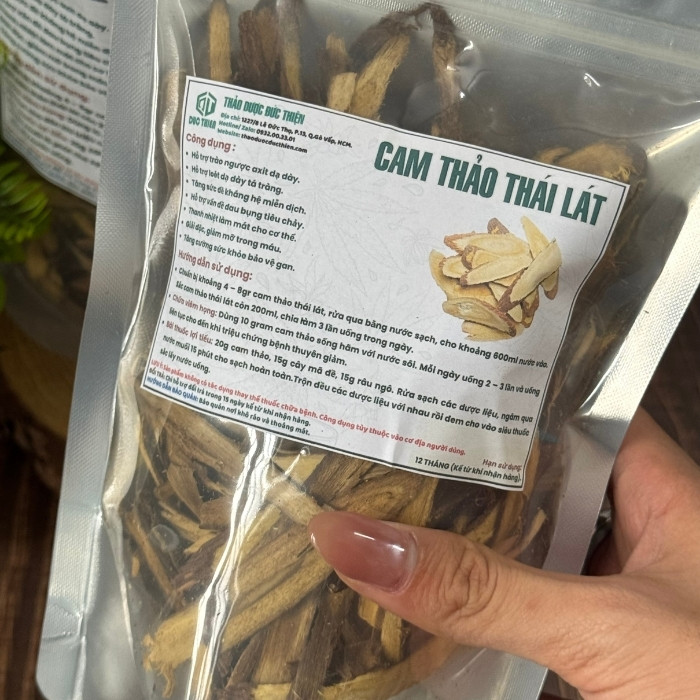 → Tại Thảo Dược Đức Thiện, chúng tôi đã sàng lọc kỹ, loại bỏ bụi bẩn, vụn nát trước khi thái lát và đóng gói. Sản phẩm đến tay bạn là những lát cam thảo chắc, to, vòng vân rõ nét, cho nước thuốc đậm đà và vị ngọt hậu sâu sắc nhất.