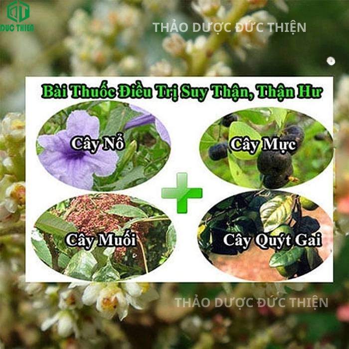 Thảo Dược Đức Thiện cung cấp đầy đủ dược liệu 4 vị hỗ trợ thận: quýt gai, phèn đen (cây mực), cây muối, cây nổ (sâm tách)