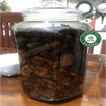 – Đổ rượu nếp 35–45 độ, khoảng 8–10 lít rượu cho 1kg nguyên liệu.