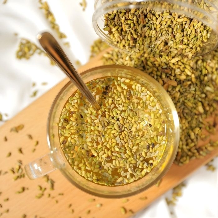 Hoa hòe sao vàng: Đây là bước nâng cấp về hương vị. Nụ hòe sau khi sấy khô được đem sao trên lửa nhỏ cho đến khi chuyển màu vàng đậm, tỏa mùi thơm nồng nàn như cốm chín. Hoa hòe sao vàng không chỉ giúp trà thơm ngon hơn mà còn làm giảm bớt tính hàn, phù hợp cho người có cơ địa bụng yếu.