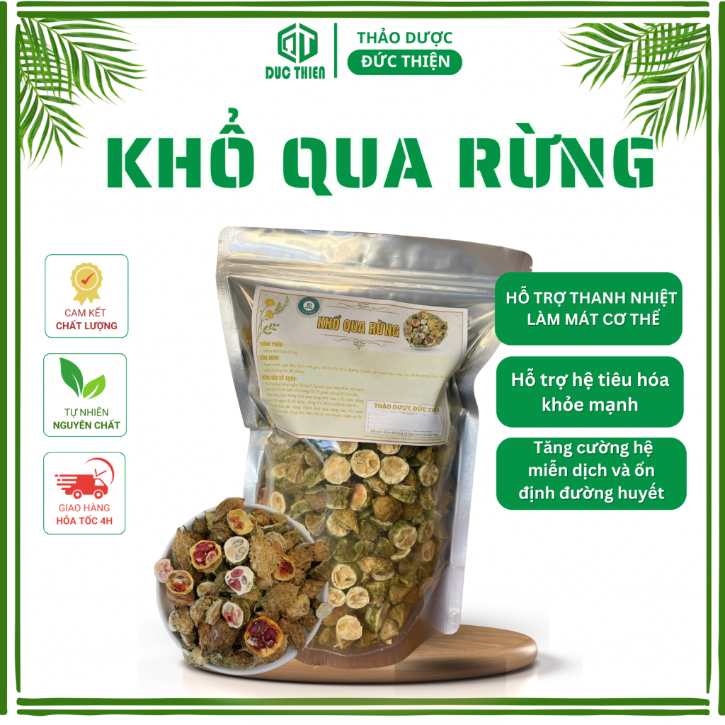 Khổ qua rừng khô là dược liệu thiên nhiên quý, được Thảo Dược Đức Thiện thu hái và sơ chế sạch, giữ nguyên hương thơm đặc trưng. Sản phẩm giúp thanh nhiệt, giải độc, hỗ trợ sức khỏe và phù hợp sử dụng hàng ngày. Khổ qua rừng loại 1 khô, thơm, sạch, không chứa chất bảo quản, an toàn cho mọi đối tượng.