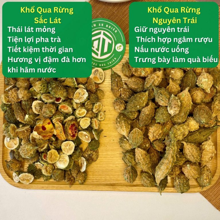 - Thành phần: 100% khổ qua rừng khô nguyên chất