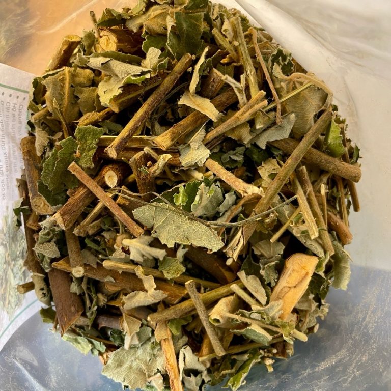 - Thành phần: 100% lá mâm xôi khô nguyên chất