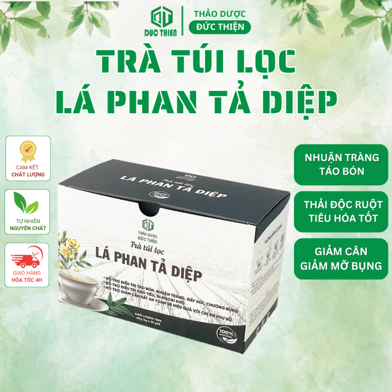 Phan Tả Diệp Túi Lọc Đức Thiện là sản phẩm trà thảo mộc thiên nhiên được chế biến từ lá phan tả diệp loại 1, nguyên lá, sạch – không chất bảo quản – không phẩm màu, sao khô và đóng gói tiện lợi dạng túi lọc. Đây là lựa chọn hoàn hảo cho những người đang gặp vấn đề về tiêu hóa, táo bón lâu ngày, nóng gan nổi mụn, hoặc muốn giảm cân an toàn không cần ăn kiêng cực đoan.