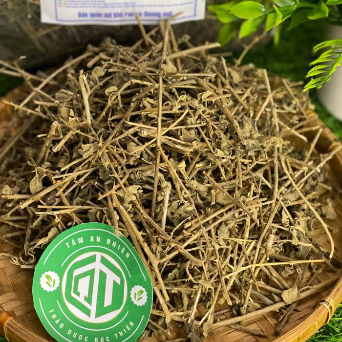 Tại Thảo Dược Đức Thiện, chúng tôi cung cấp sản phẩm dạng khô (thân, cành, lá, rễ) đã được cắt khúc và làm sạch. Sản phẩm trà khô chuẩn sẽ có màu xanh rêu pha nâu (không bị đen thui do ẩm mốc), ngửi thấy mùi thơm thảo mộc đặc trưng.