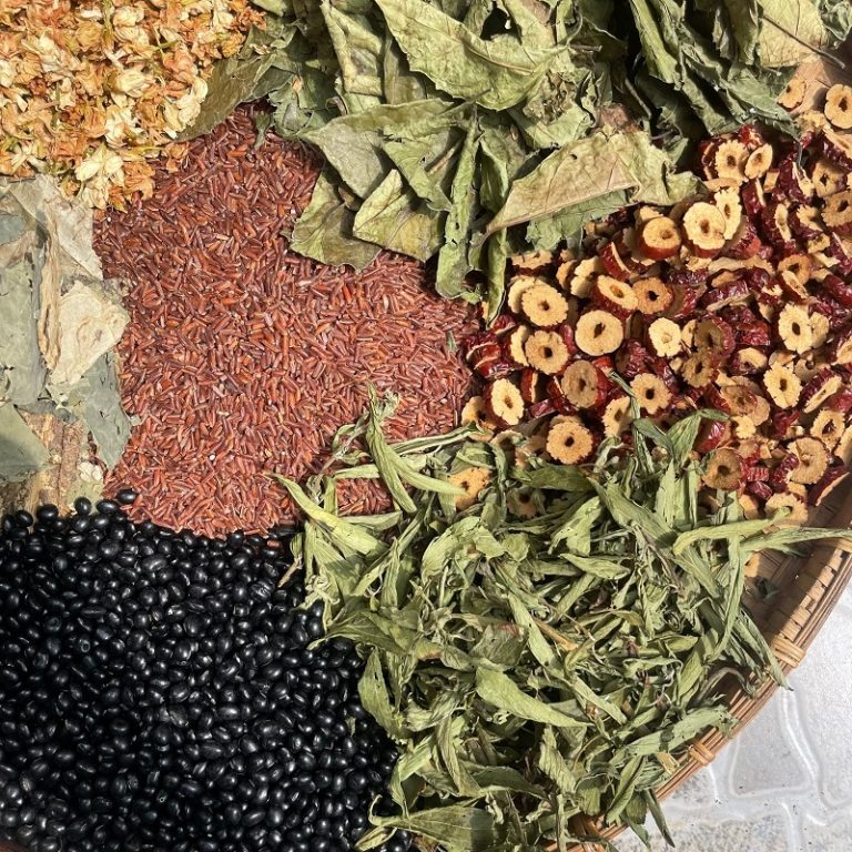 Trà được phối trộn từ những nguyên liệu sạch, sấy thủ công gồm: