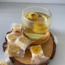 - Lấy 1 viên trà hoa cúc đóng sẵn trong túi, pha với khoảng 180ml nước nóng.
