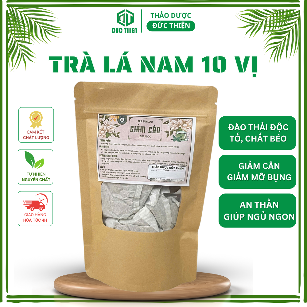 🌿 TRÀ GIẢM CÂN LÁ NAM 10 VỊ – GIẢM MỠ BỤNG AN TOÀN TỪ THẢO DƯỢC THIÊN NHIÊN 🌿