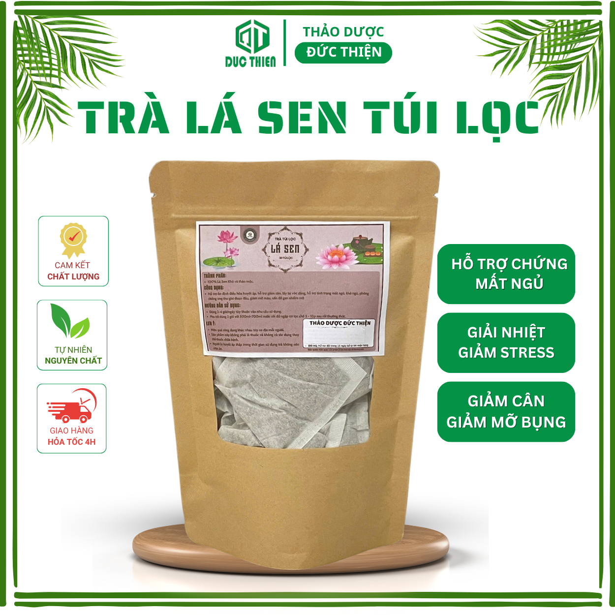 Trà Lá Sen Túi Lọc Đức Thiện là sản phẩm thảo mộc tự nhiên được chế biến từ 100% lá sen sạch, phơi sấy đúng chuẩn dược liệu. Trà có công dụng hỗ trợ giảm mỡ máu, hỗ trợ gan, giúp ổn định huyết áp và đặc biệt giúp ngủ ngon. Với dạng túi lọc tiện lợi, bạn có thể sử dụng như một loại trà thảo dược mỗi ngày để nâng cao sức khỏe.