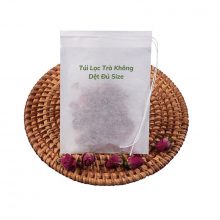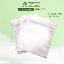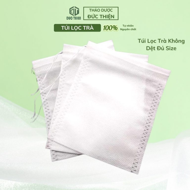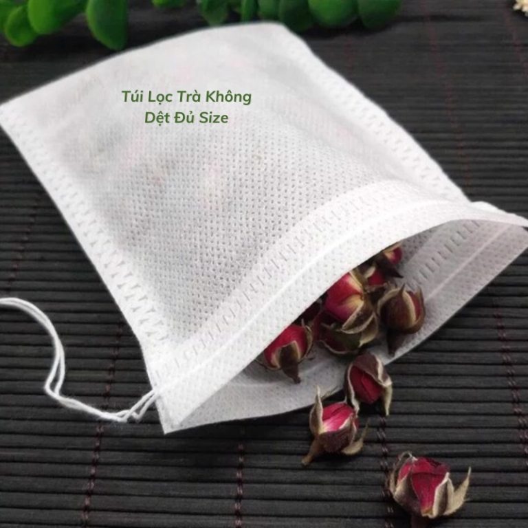 Túi lọc trà vải không dệt là phụ kiện tiện lợi. Sản phẩm làm từ vải PP không dệt cao cấp, có dây rút, màu trắng. Vải dày, mịn, thấm hút tốt và chịu nhiệt từ 130–170 độ C.